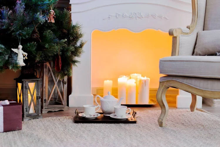 Портал для камина "Марсель" - элегантное и уютное дополнение интерьера. Портал позволяет создать декоративный камин в любой комнате. Внутрь можно поставить свечи, книги или электрический камин подходящего размера. Портал молочно-белого тона украшает декоративная резьба ручной работы в виде ветвей оливы и элегантная патина.