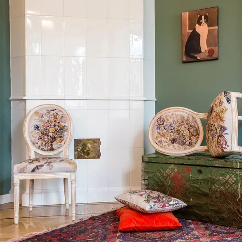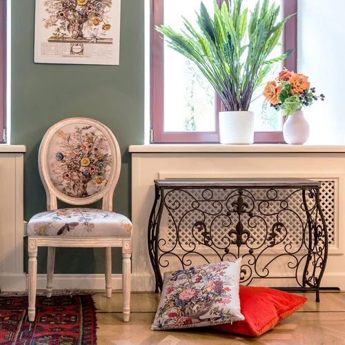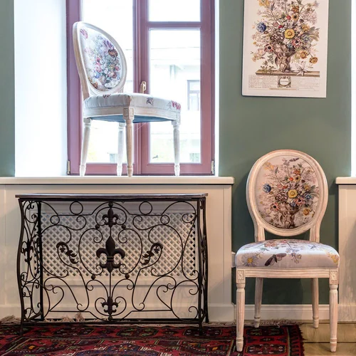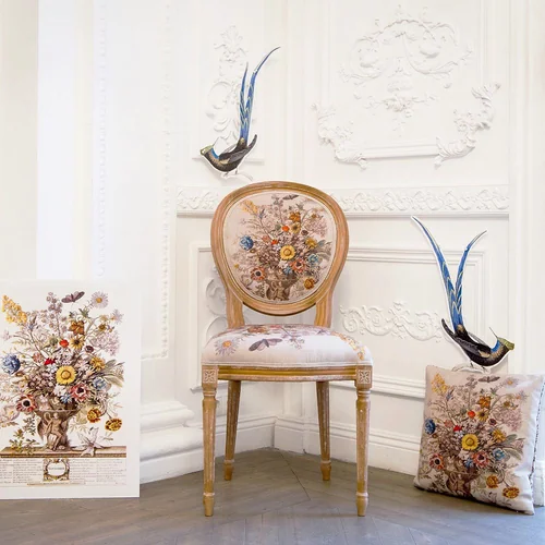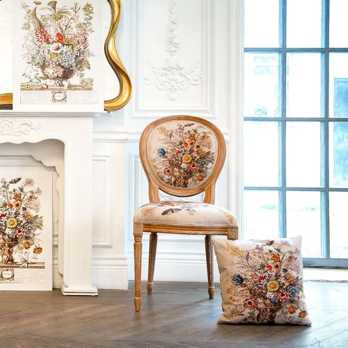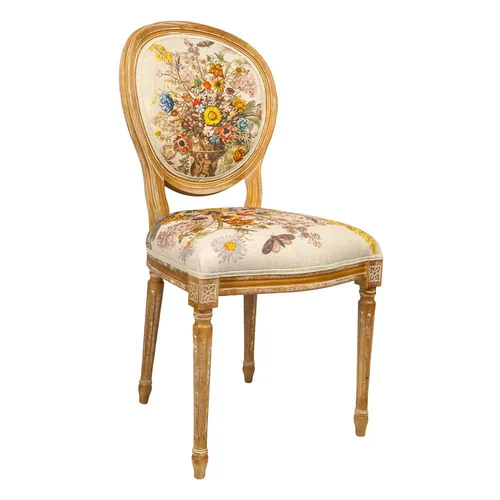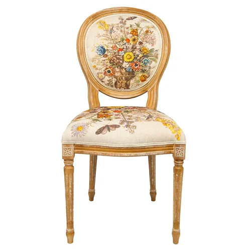 Произведения искусства и интерьер - единое целое. С древних времен копии картин переносились в интерьерные рисунки, - и тогда уже и мебель становилась, ни дать ни взять, арт-объектом. Стулья "12 месяцев цветения" не только респектабельны, уютны, удобны и надежны. Их богатый дизайн, покоривший четыре столетия истории искусств, станет красноречивой афишей домашнего гостеприимства и изысканных вкусов владельца. Корпус стула изготовлен из бука. Резьба играет ведущую роль: стул украшен изящными желобками, кольцами и розетками, определяющими высшую степень мебельного мастерства. Благородная природная фактура древесины подчеркнута рукописной патиной. Обаяние старины богато специфическим теплом и уютом.