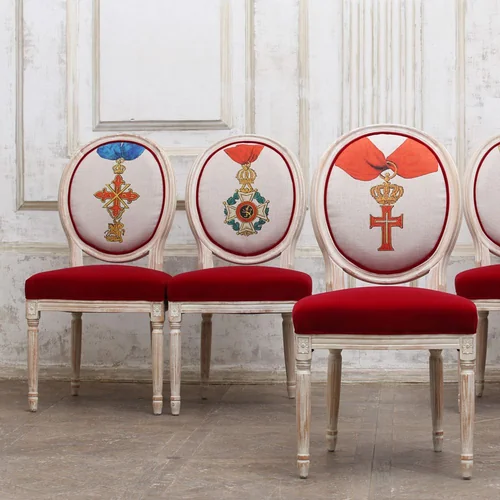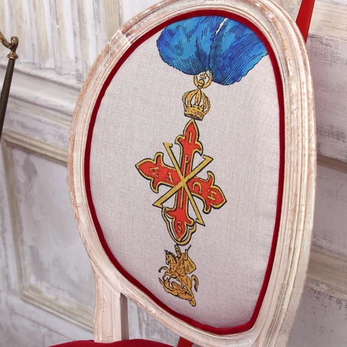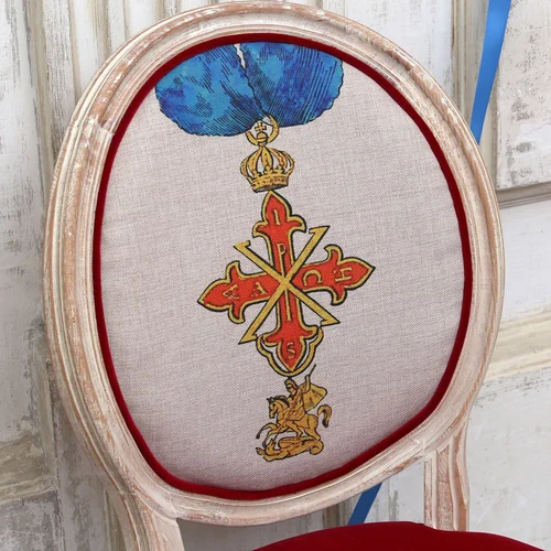 История — это взаимодействие, сотрудничество или столкновение народов и государств, а ордена и медали - свидетельство тому. Стул с изображением ордена - визитное украшение гостиной комнаты и столовой, спальни и кабинета, студии и холла. Корпус стула изготовлен из бука. Резьба играет ведущую роль: стул украшен изящными желобками, кольцами и розетками, определяющими высшую степень мебельного мастерства. Благородная природная фактура древесины подчеркнута рукописной патиной. Обаяние старины богато специфическим теплом и уютом.